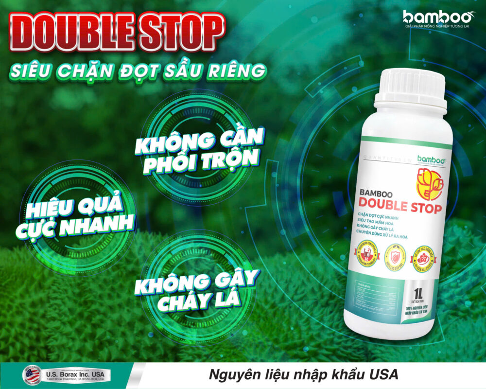 Pha 1 lít DOUBLE STOP với 200 – 400 lít nước và phun đều từ ngoài vào trong, phủ kín bề mặt lá. Để đạt kết quả tốt nhất, nên phun vào sáng sớm hoặc chiều mát.